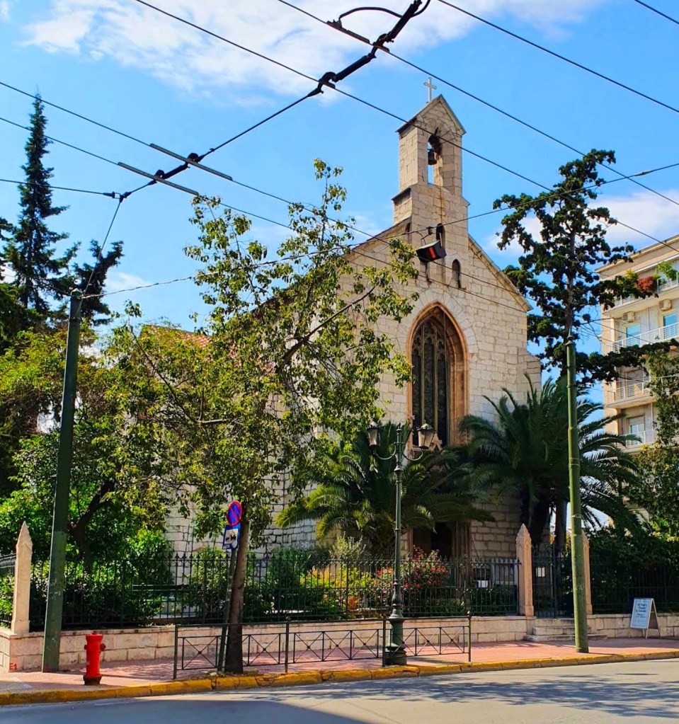 Holy Saturday morning, the bus from Piraeus dropped me at Syntagma Square in central Athens where – very conveniently – I found St Paul’s Anglican Church. Reading the church sign with its parish notices, I learned the name of the priest, Fr. Jeremy Peake, and his telephone number. Taking the risk of calling him early on Holy Saturday morning, I surprised him with an unanticipated but what I hoped would be a welcome request: I wished to be baptized. In a wonderfully understated British way, he responded by saying, “Perhaps we should talk about that!” He then invited me to come by for coffee. When I shared with him about my months of study, and with whom I had been receiving instruction in the Christian Faith, he was reassured. Warmly, he invited me to come early to the church that evening to make my first confession, and receive Baptism at the Great Easter Vigil.