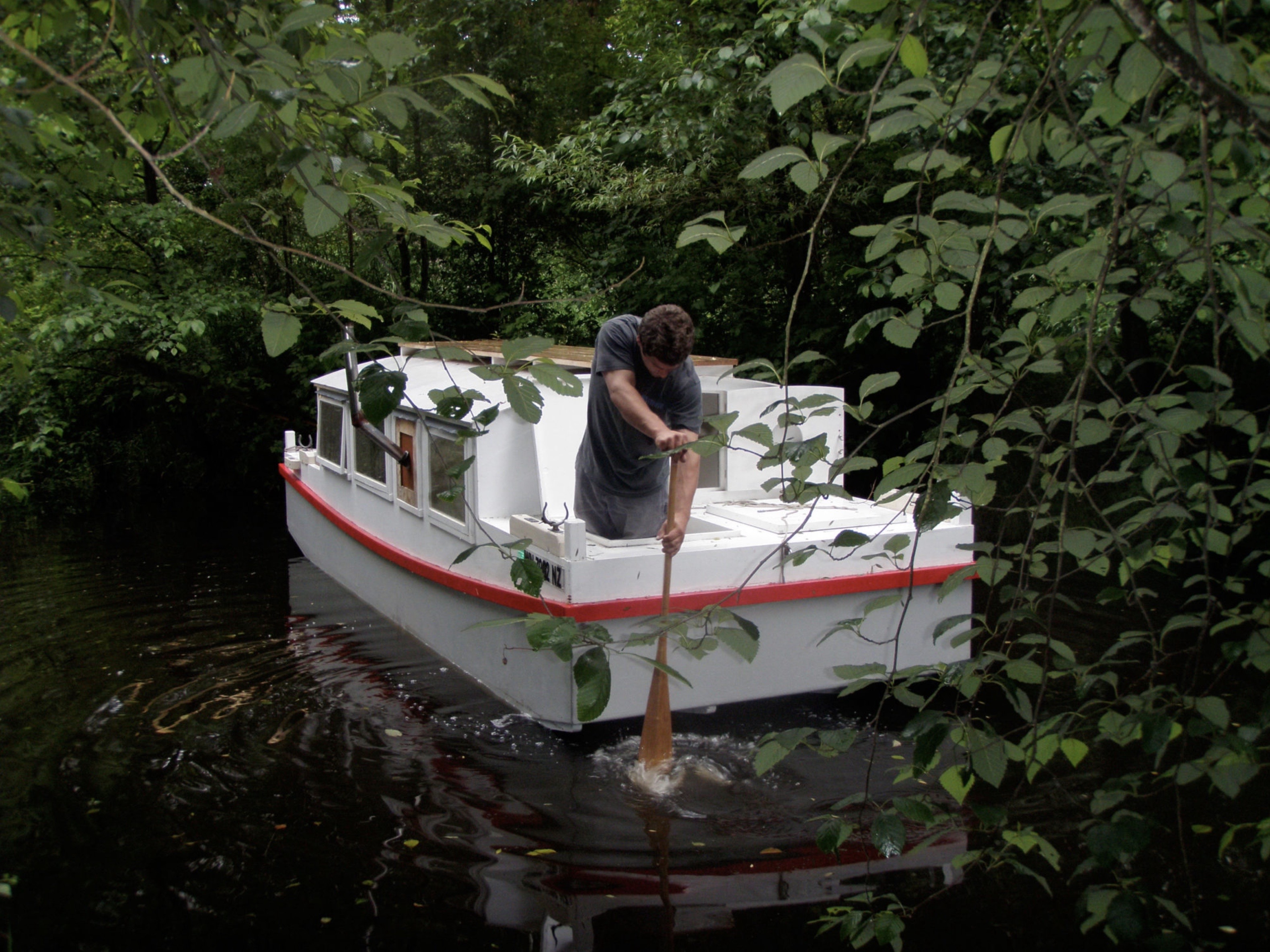 I have long admired the simplicity of Escargot’s design as well as its evident functionality. I am equally appreciative of Escargot’s sister designs, in particular the larger Joli Boat. Below is a French adaptation of Escargot, named Caracole. She is shown under propulsion by a sculling oar.