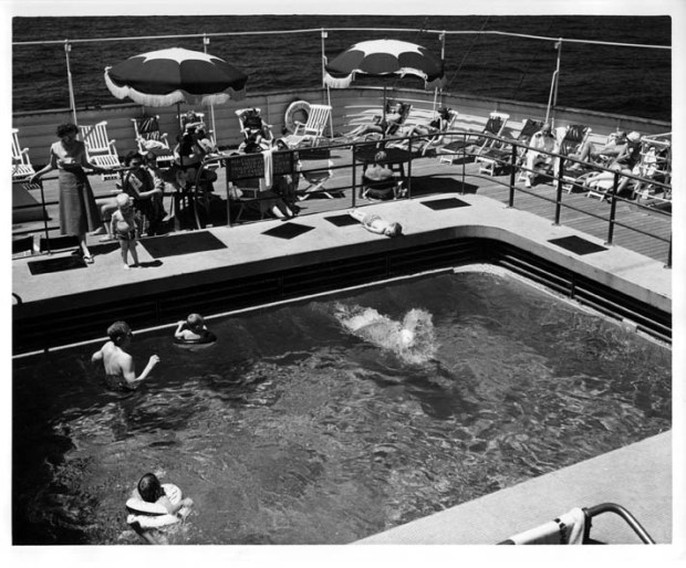 I remain most grateful for our ocean voyages, which allowed a graceful transition between progressively differing time zones, in addition to all the fun we had on the way. At that time, traveling by jet between the continents seemed like the luxury way to transit the oceans. Now, in retrospect, though the two ships were comparatively modest in relation to modern cruise ships, voyaging on the Wilson and Cleveland was clearly the preferred way to go! For we were all pampered by the ship’s crew, from the uniformed waiters in the dining room and lounges, to the attendants who brought refreshments like ice cream to the inside and poolside teak deck chairs.