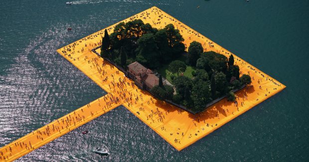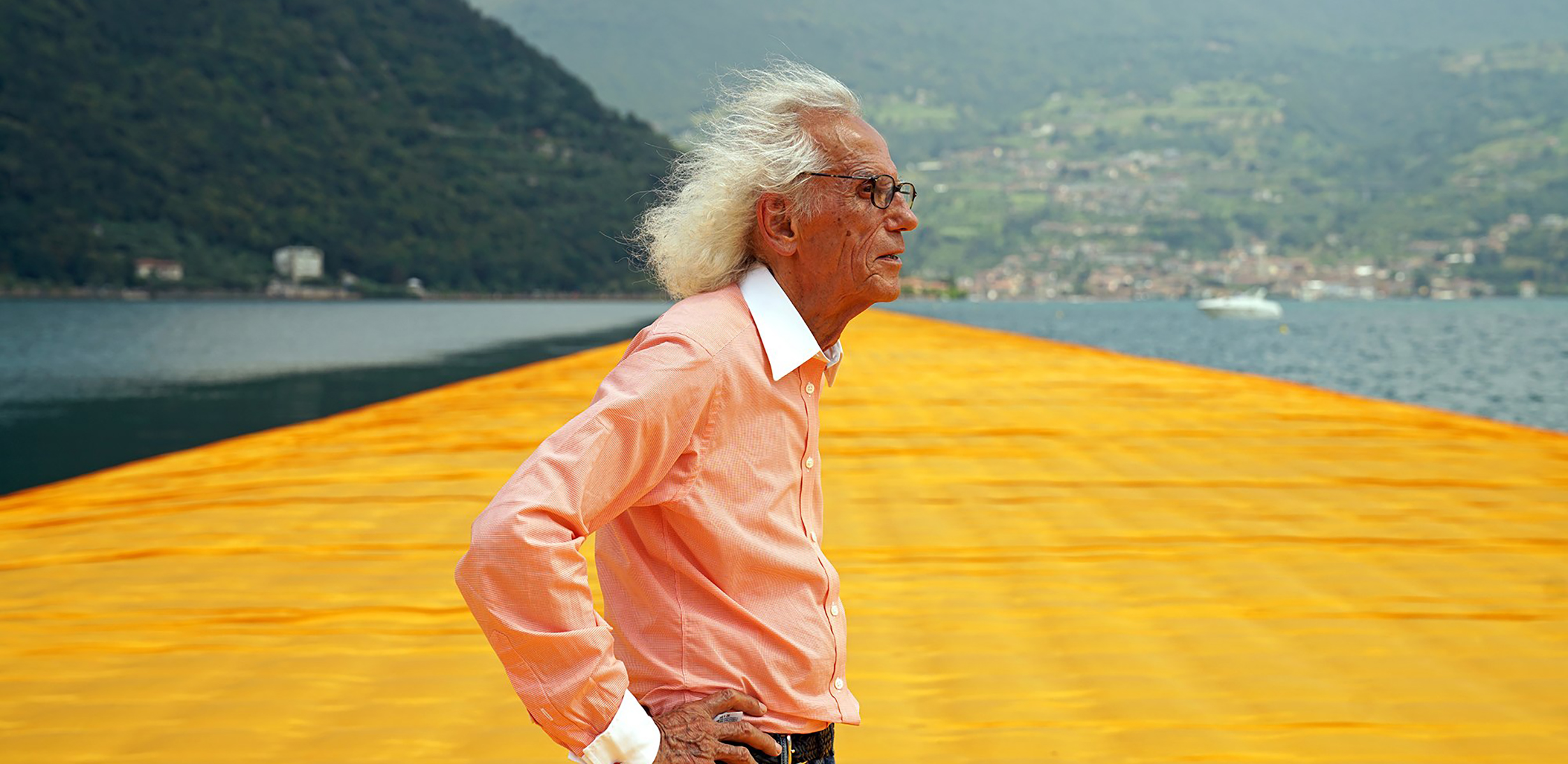 Christo on Floating Piers, Lake Iseo, Italy, 2016, after Jeanne-Claude’s death in 2009