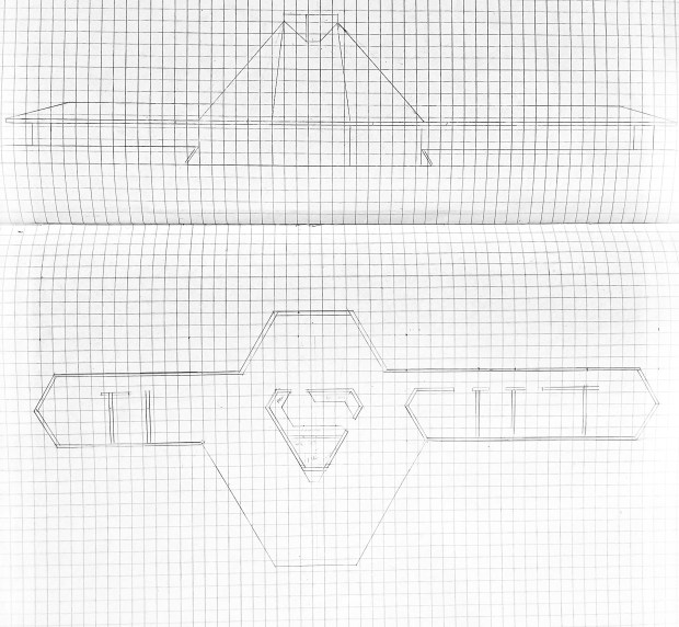 I am proud of the overall design, but fully acknowledge how this was an adolescent flight of fantasy! Below are a couple of representative examples – among many – of very obviously FL Wright-influenced designs for houses and plans for other structures that I produced in the mid to latter 1970s, just out of high school, while contemplating a vocation in architecture.