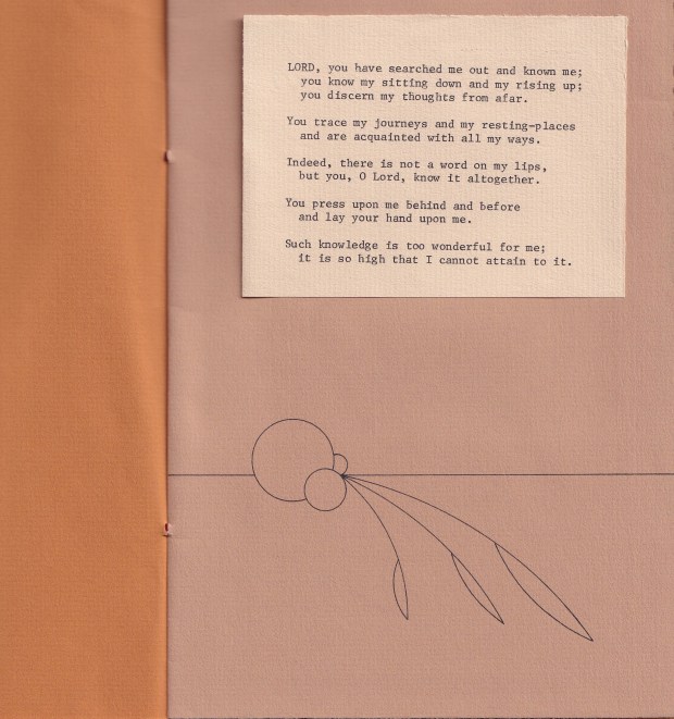 The above images are copyright, © Stephen Holmgren 2023. This post is based on a little pamphlet featuring Psalm 139:1-17, which I made while staying at the Pension Colorado in central Florence during the fall semester of 1977 while on a study abroad program through St Olaf College, in my sophomore year. I also acknowledge the probable influence of Alexander Calder’s mobiles.