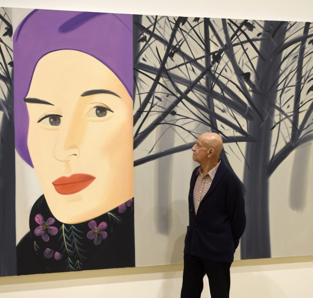 At the age of 95, Alex Katz is still painting! Having created a huge portfolio over decades of work he continues to explore the visual possibilities inherent in capturing a three dimensional world in the two dimensions on large surfaces. He has consistently demonstrated his gifts as a painter by his focus on representational art, and succeeded at this when many of his contemporaries succumbed to the widespread public appeal of abstract art, while others then began to mimic public and commercial print media in what we now commonly refer to as ‘Pop Art.’