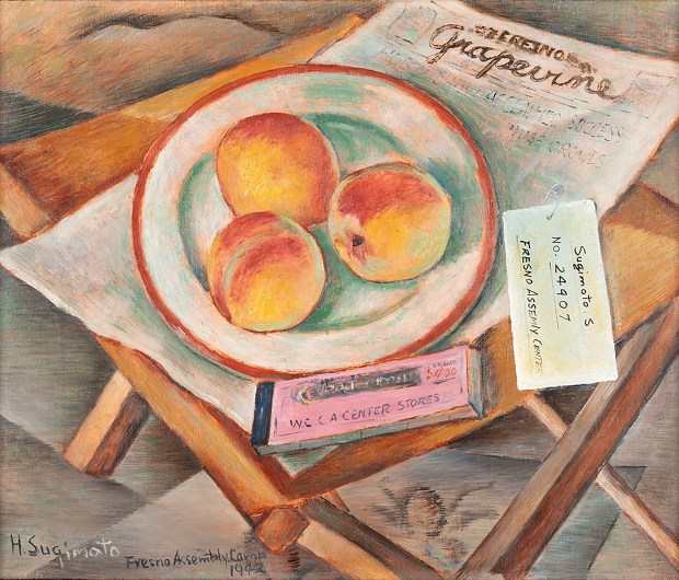 Despite his father’s immigration to the United States before World War I, and their willingness to assimilate into American society and receive citizenship, the Sugimotos, like so many Japanese, found themselves rounded up in by our government in 1942. Henry’s family was sent away with one suitcase each from California to a detention camp in Arkansas. Such forced moves in many cases led to the unexpected forfeiture of family property and possessions. Henry Sugimoto lost a large collection of his artwork, auctioned off without his permission or knowledge while he – as an American citizen – was forcibly detained.