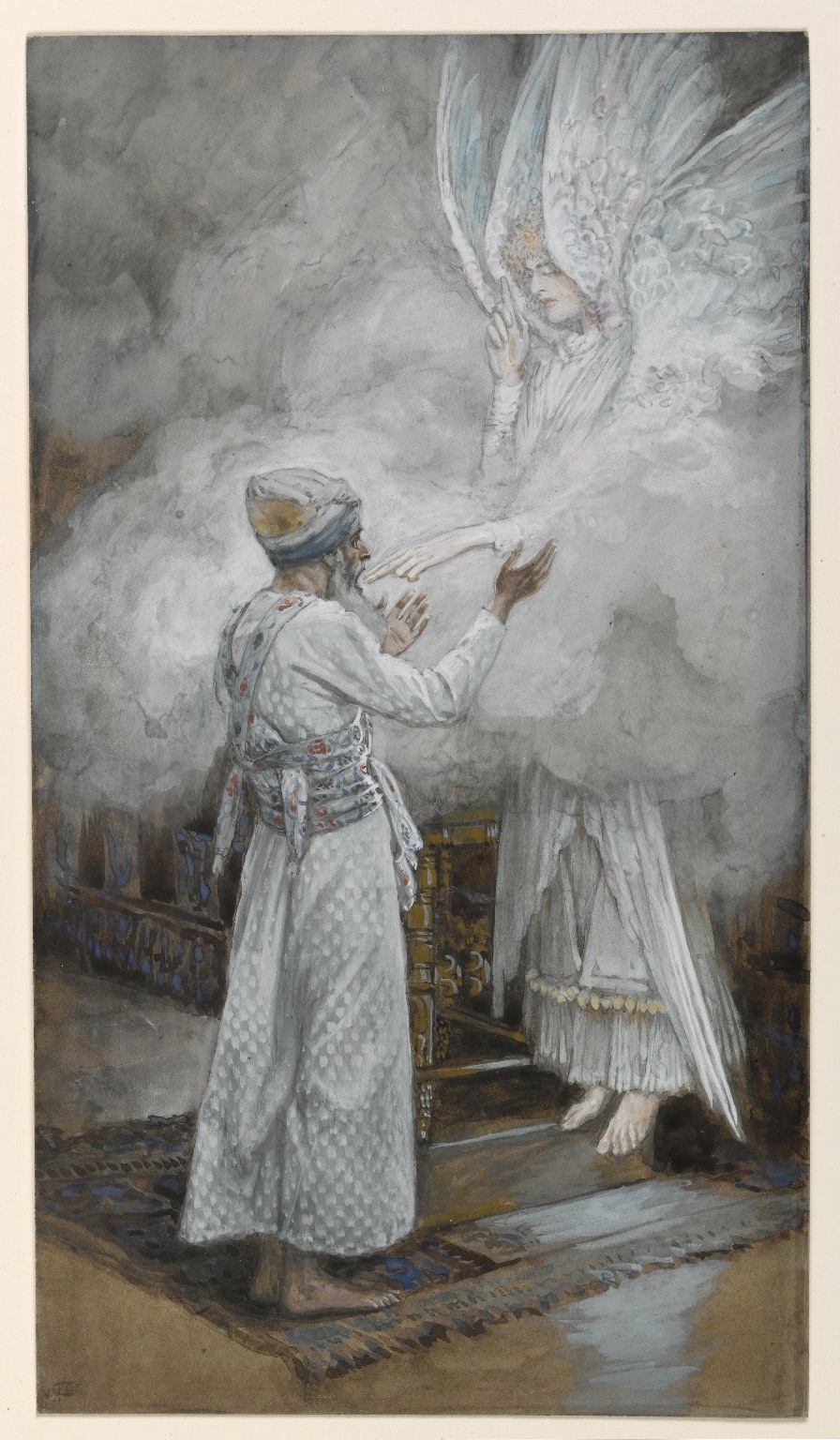 James Tissot, The Vision of Zechariah, with which Luke begins the great story (Luke 1). The priest, Zechariah receives an epiphany, telling him that he and Elizabeth will have a son, to be named John, later known as ‘the Baptizer.’