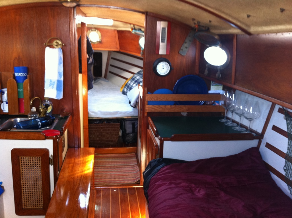 My own experience with ‘one-foot-itis’ came from my enthusiastic enjoyment of our 15’ West Wight Potter, a boat whose ‘cabin’ is sometimes described as having the interior space of a pup tent, while resting on a boat with the buoyancy of a cork. I cruised solo on the boat for two weeks one summer, and was hooked on the pleasure associated with that kind of time away on the water. Then, naturally (sailors will understand this), I began looking at bigger boats, of a size that would enhance my cruising adventures.