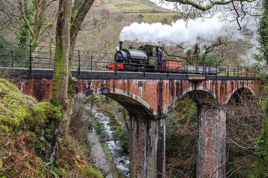 Among the social impacts of the Second World War upon the lives of those in the United Kingdom was a contemporaneous rise in the mobility of many citizens for the purposes of work and leisure, while changes in historic industries like slate mining were negatively impacted by foreign competition. At a time when slate quarries such as the one served by the Talyllyn were waning in production, increased opportunities for tourism, especially for workers from urban industrial areas, gave new life and purpose for several historic Welsh narrow gauge railways by providing access to holiday destinations. The Golgoch Viaduct illustrates an aspect of this transition from the railway’s utilitarian origins to its present role in providing memorable recreation experiences. The viaduct remains a beautiful example of Victorian engineering whose original purpose was simply to serve as a means of allowing relatively level access to a slate quarry, and which over time has become a noted tourist destination itself.