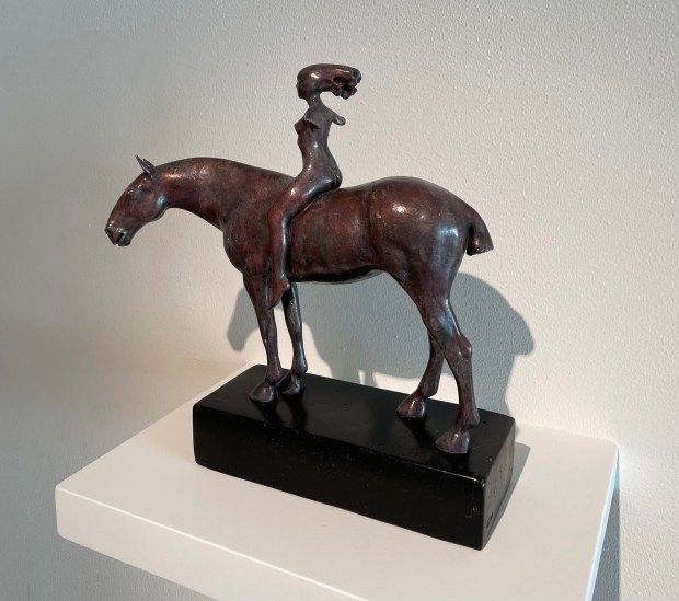 Another large scale equine sculpture may come to mind when viewing the Scottish Kelpies, inspired by Leonardo da Vinci’s drawing of a large horse monument, designed for the Duke of Milan. A modern day sculpture, based on Leonardo’s drawings, can be found at the Meijer Gardens, in Grand Rapids, Michigan, as well as one cast for the city of Milan. Nina Akamu’s, The American Horse, expresses a similar kind of energetic vitality such as we find in Andy Scott’s great figures along the Firth and Clyde Canal. 24 feet high, Akamu’s strong and vigorous impression of a horse has something of the bone structure and mass of a Clydesdale, and every bit of the spirit that we find in Scott’s two stirring examples.