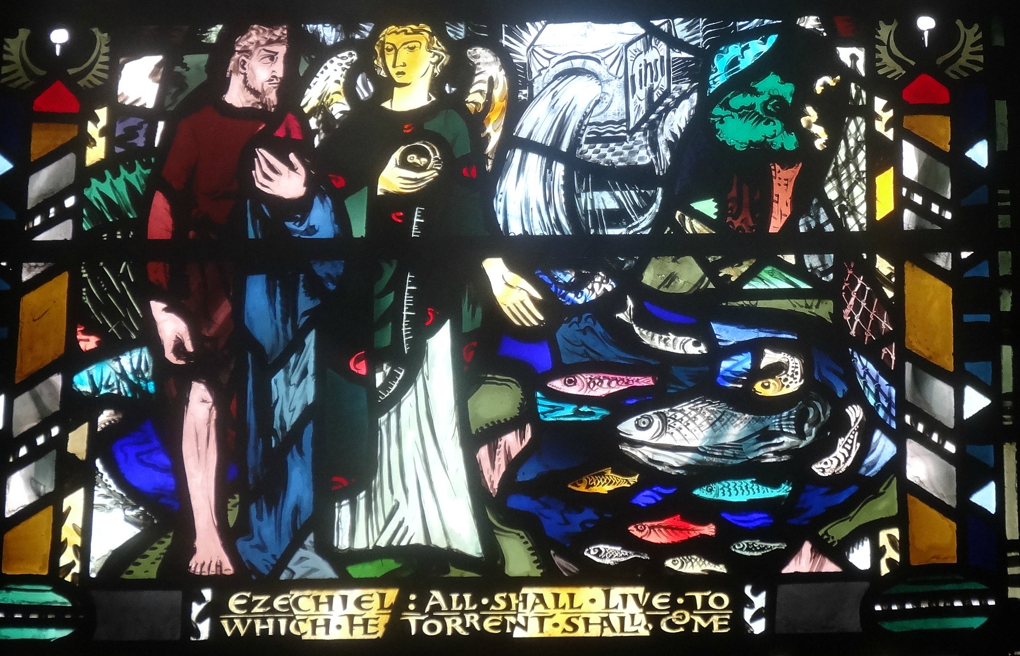 On the Sunday of my recent visit, I was told that the congregation numbered about 145, and I estimate that the nave would comfortably seat about 200 people, though it could probably accommodate more. With the Gothic-inspired longitudinal floorplan, evident when one approaches the exterior of the building, a visitor might expect a rather narrow and linear worship space. Such an initial impression of the likely effect of the interior spatial arrangement is overcome by a number of subtle but effective design choices made by the architect and those who worked with him.