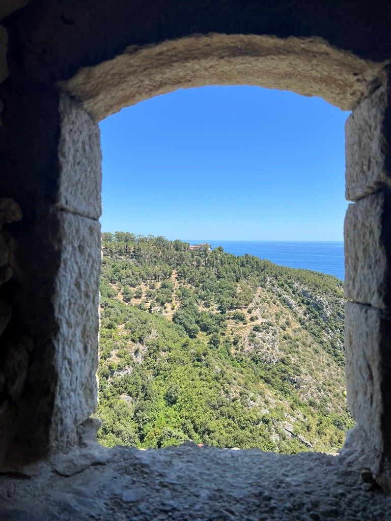 Moonrise off the harbor breakwater in Antibes (photo also by Gregory Holmgren)