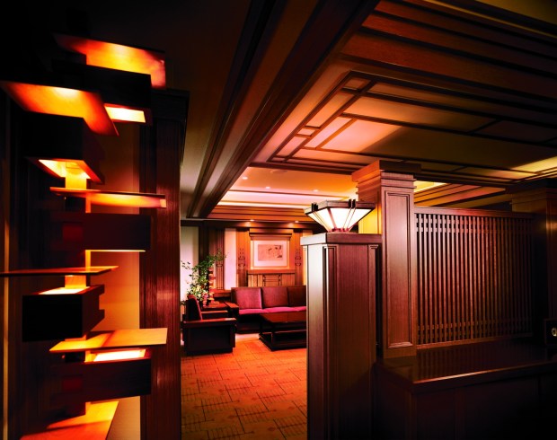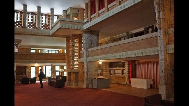 The preserved but relocated lobby of Frank Lloyd Wright’s Tokyo Imperial Hotel (1923)